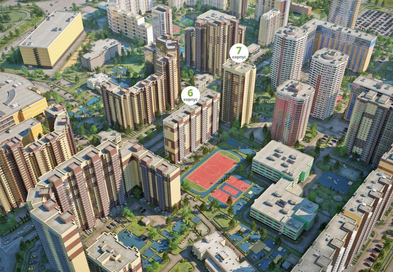 ЖК Эконом-класса, 25 этажей в доме, высота потолков 2.8 м, стены — монолит.